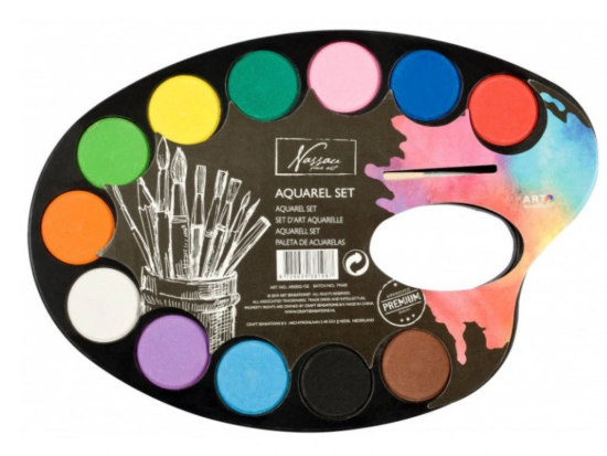 Akvarelové barvy - paleta se štětcem - 12 ks - AR0502/GE