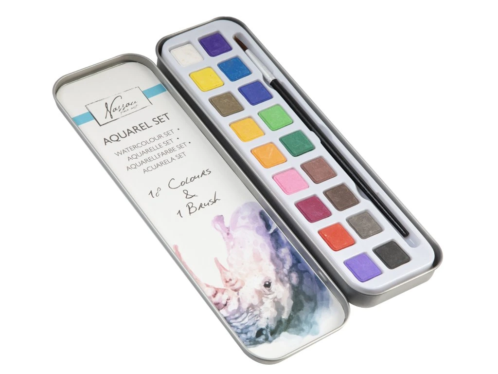 Kvalitní akvarelový set s 18 barvami v elegantní plechové krabičce. Ideální pro začátečníky i pokročilé umělce.
