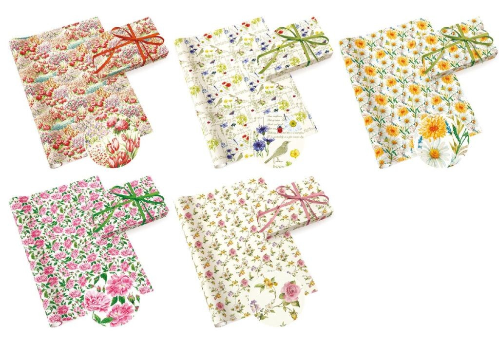 Kvalitní balicí papír s nadčasovým květinovým designem, který se snadno skládá a netrhá.