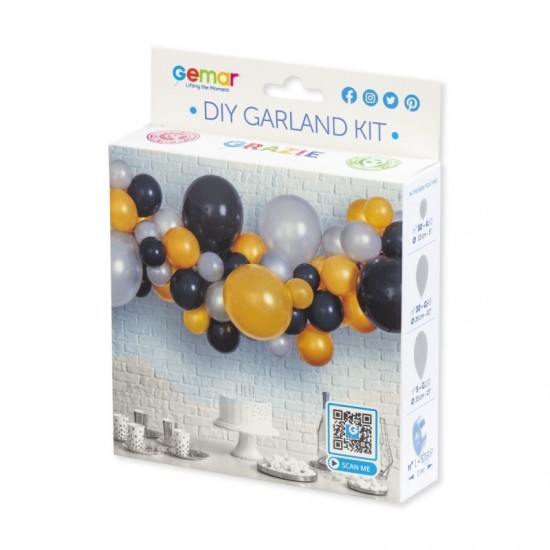 Balónková girlanda - černá, stříbrná, zlatá - 65 ks - "Udělej si sám" - 410070