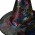 Kouzelný klobouk černé barvy zdoben barevnými magickými pavučinkami.