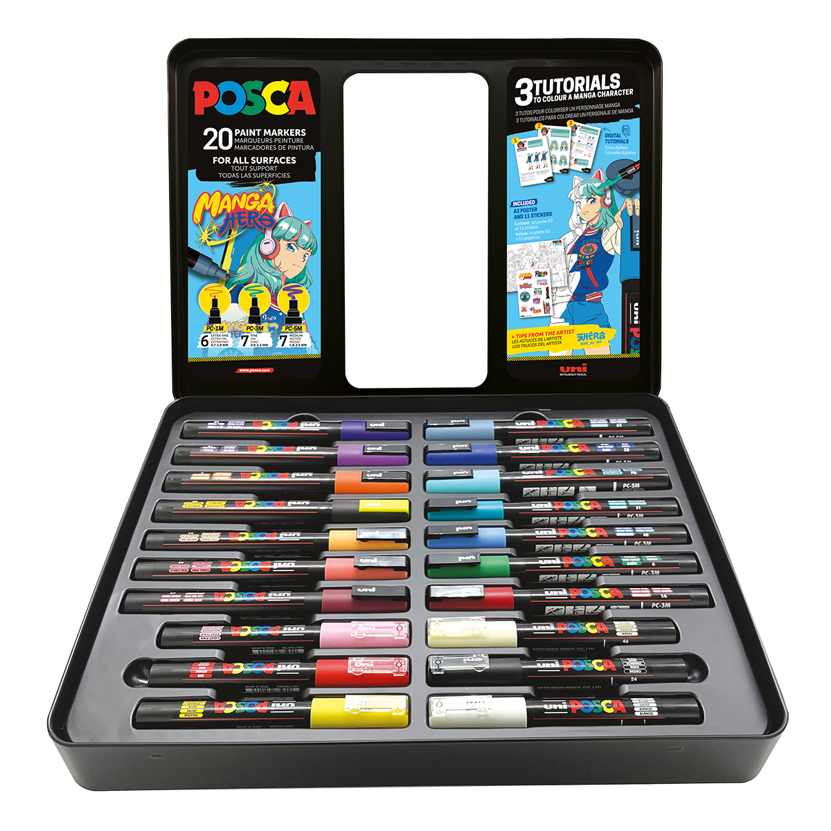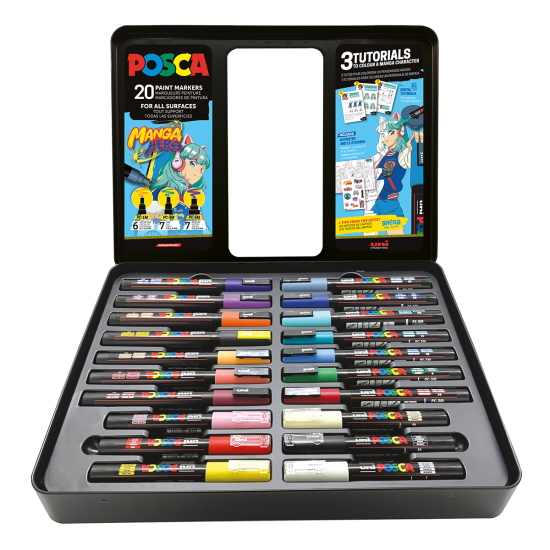 Dárková sada Posca MANGA hero - 20 ks v kovovém boxu - P302422427-ak863