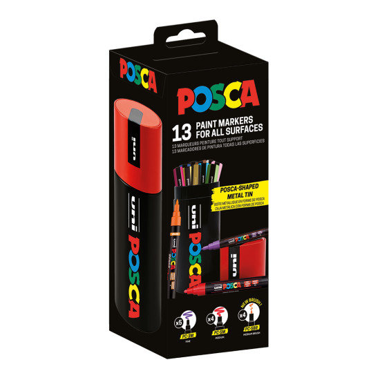 Dárková sada Posca v plechové dóze - 13 ks - 5x PC-3M, 4x PC-5M, 4xPC-5BR - P302422455