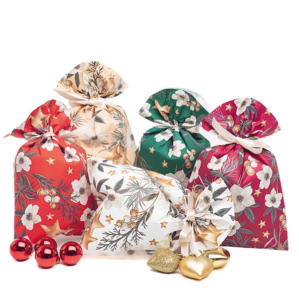 Vánoční dárkový sáček umožňuje snadno zabalit různé druhy drobných dárků bez nutnosti použití balicího papíru. Praktický a elegantní způsob balení, který šetří čas i námahu. Sáček můžete uzavřít vázací stuhou a tím ho dozdobit.
