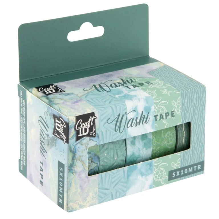 Dekorační lepicí pásky - washi - zelené - 1,5 cm x 10 m, 10 ks - CR3006/GEZ