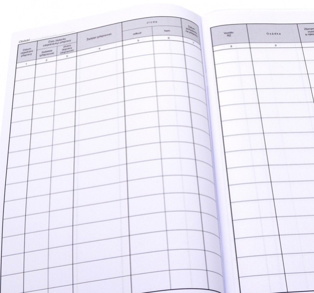 Tiskopis určený pro záznam informací o přepravě, vč. datumu, RZ, žadatele atd..