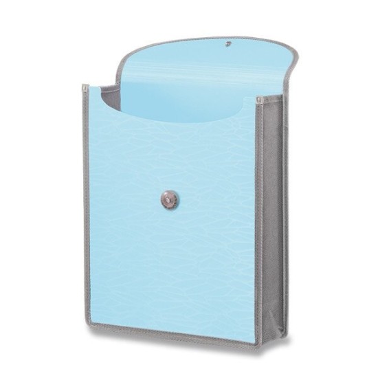 Aktovka na dokumenty v pastelových barvách pro pohodlný přenos a organizaci dokumentů velikosti A4. Vyrobena z pevného polypropylenu, tloušťka 500 mikronů. Rozšiřitelné textilní dno z odolného materiálu, uzavírání na elastickou gumičku a knoflík. Ideální velikost do batohu.