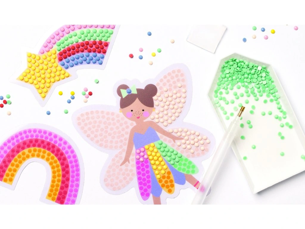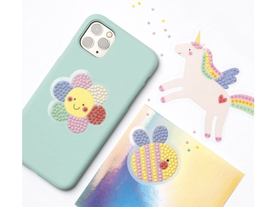 Kreativní sada pro diamantové malování rozvíjí zručnost a fantazii. Vytvořte třpytivé samolepky s duhovými motivy a ozdobte penál, obal na telefon či sešit. Balení obsahuje 6 samolepek, 1000 kamínků, sběrač, tácek, vosk a návod. Skvělý dárek pro děti i dospělé!