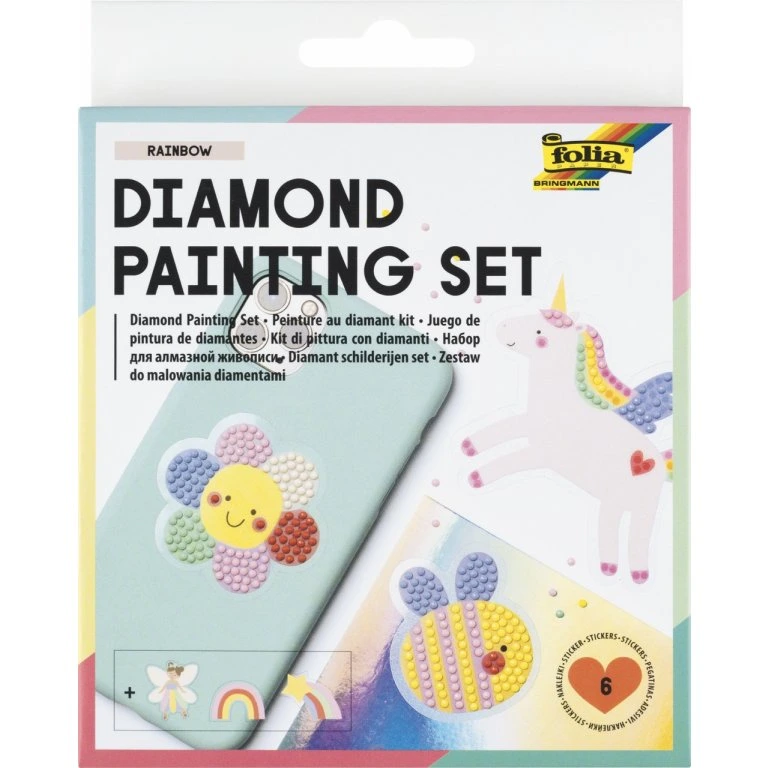 Objevte radost z tvoření s touto sadou pro diamantové malování, která spojuje zručnost, kreativitu a lesk tisíců třpytivých kamínků. Tato kreativní sada vám umožní vytvářet okouzlující samolepky s duhovými motivy, které promění obyčejné předměty v originální a zářivé doplňky.