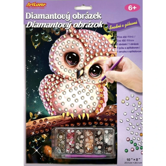 Sada obsahuje barevný obrázek, na kterém jsou lepicí tečky. Postupně na jednotlivé tečky umísťujete pomocí aplikátoru barevné kamínky. Tento výrobek podporuje rozvoj jemné motoriky a koordinaci mezi okem a rukou.