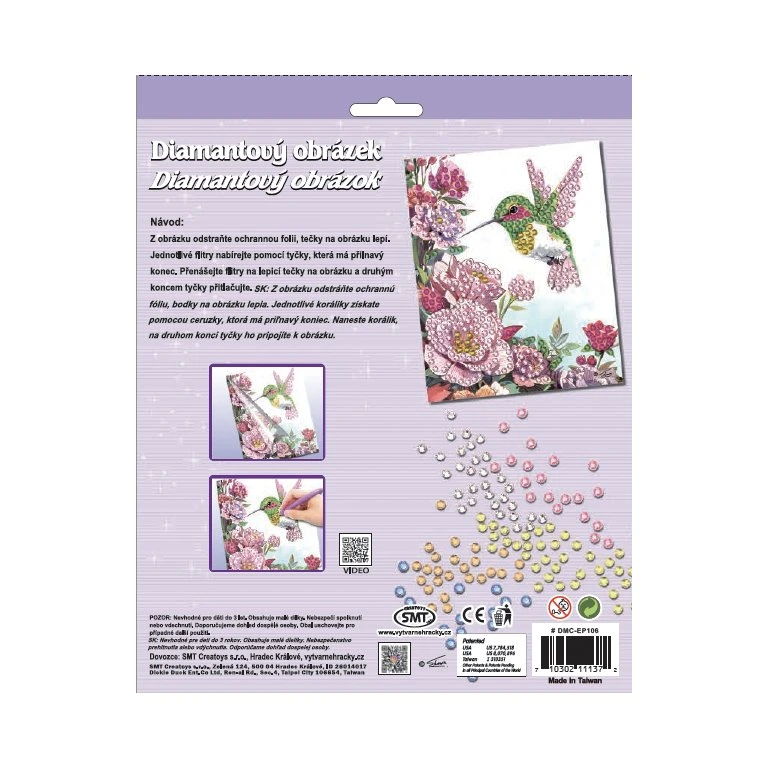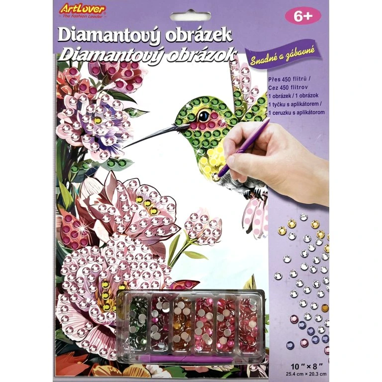 Sada obsahuje barevný obrázek, na kterém jsou lepicí tečky. Postupně na jednotlivé tečky umísťujete pomocí aplikátoru barevné kamínky. Tento výrobek podporuje rozvoj jemné motoriky a koordinaci mezi okem a rukou.