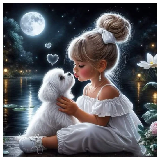 Diamantový obrázek - Holčička a pes - 30 x 40 cm - 2002492