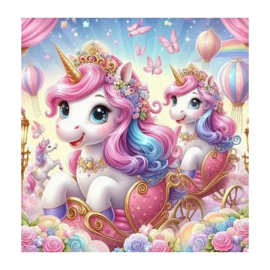 Diamantový obrázek - Jednorožci v kočáře - 23 x 30 cm - 2000640