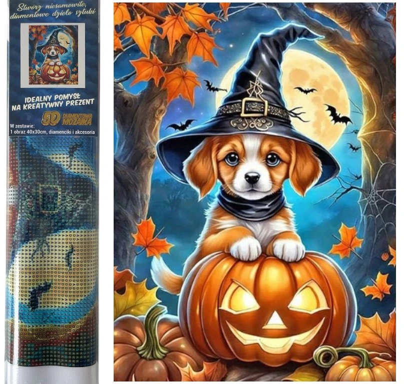 Diamantový obrázek - Pes a dýně - 30 x 40 cm - 2000866