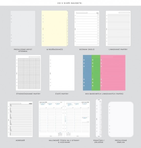 | Velikost diáře | A5 (148 x 210 mm) |