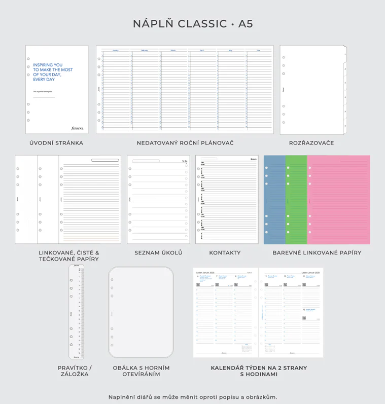 Moderní varianta ikonického designu společně s kvalitní a odolnou kůží odkazují na původní vzhled diářů Filofax. A to včetně malého detailu na patentu zapínání připomínající rok 1921, kdy byla společnost založena.Hlavní přednosti: