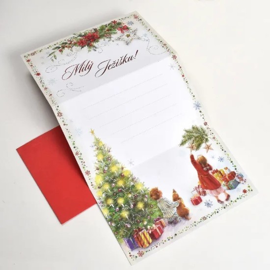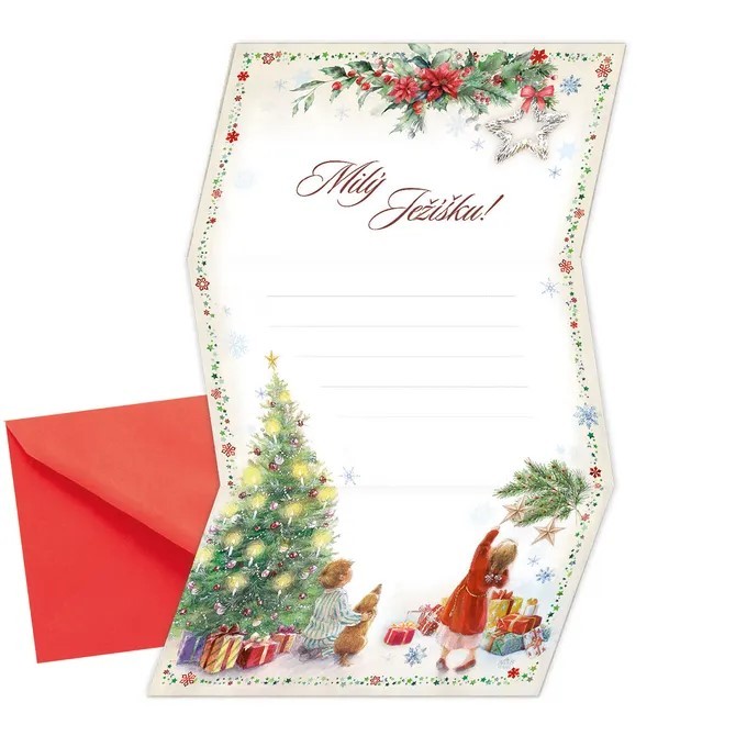 * krásně ilustrovaný dopisní skládací papír pro děti i dospělé, kteří chtějí Ježíškovi sdělit svá přání