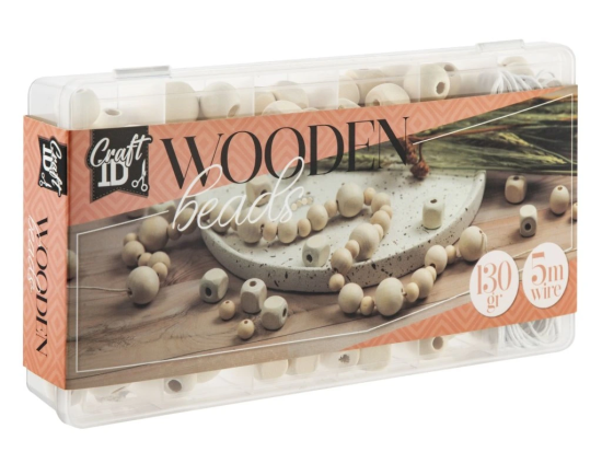 Dřevěné korálky pro tvoření v plastovém boxu