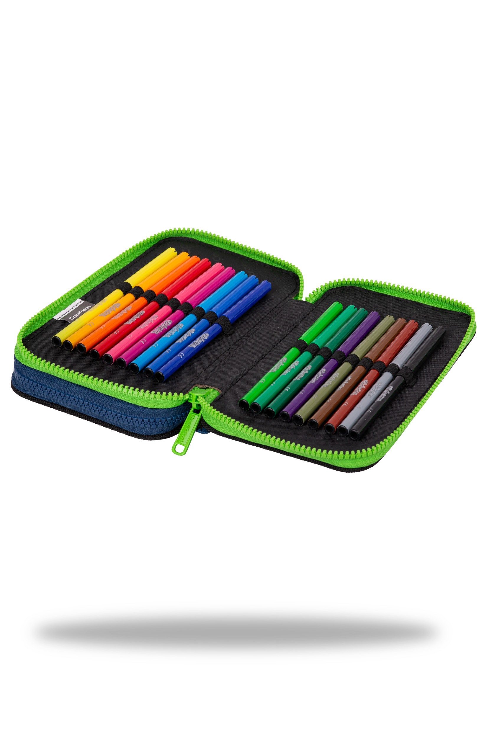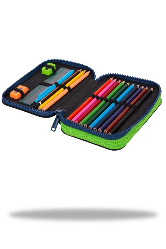 Vybavený dvoupatrový školní penál na psací potřeby.