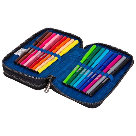 Vybavený 2 zipý školní penál CoolPack Jumper 2 Obsahuje: • trojhranné pastelky Colorino 12 ks • barevné fixy Colorino 18 ks • trojhranná tužka HB Colorino 1 ks • kuličkové pero Patio Base 1 ks • pravítko 15 cm • pryž Colorino