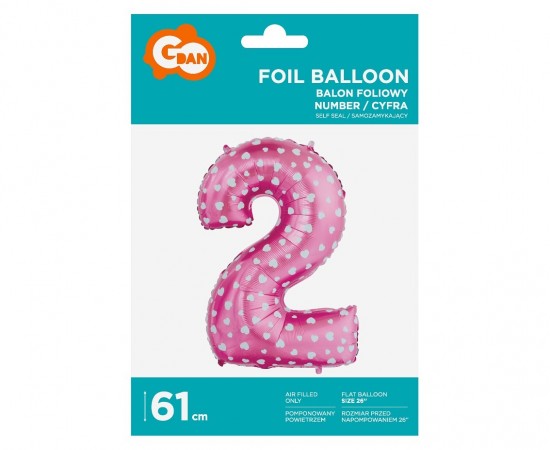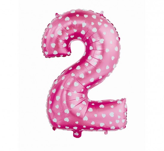 Fóliový balónek 64 cm - číslice 2 - růžový s potiskem - 412052
