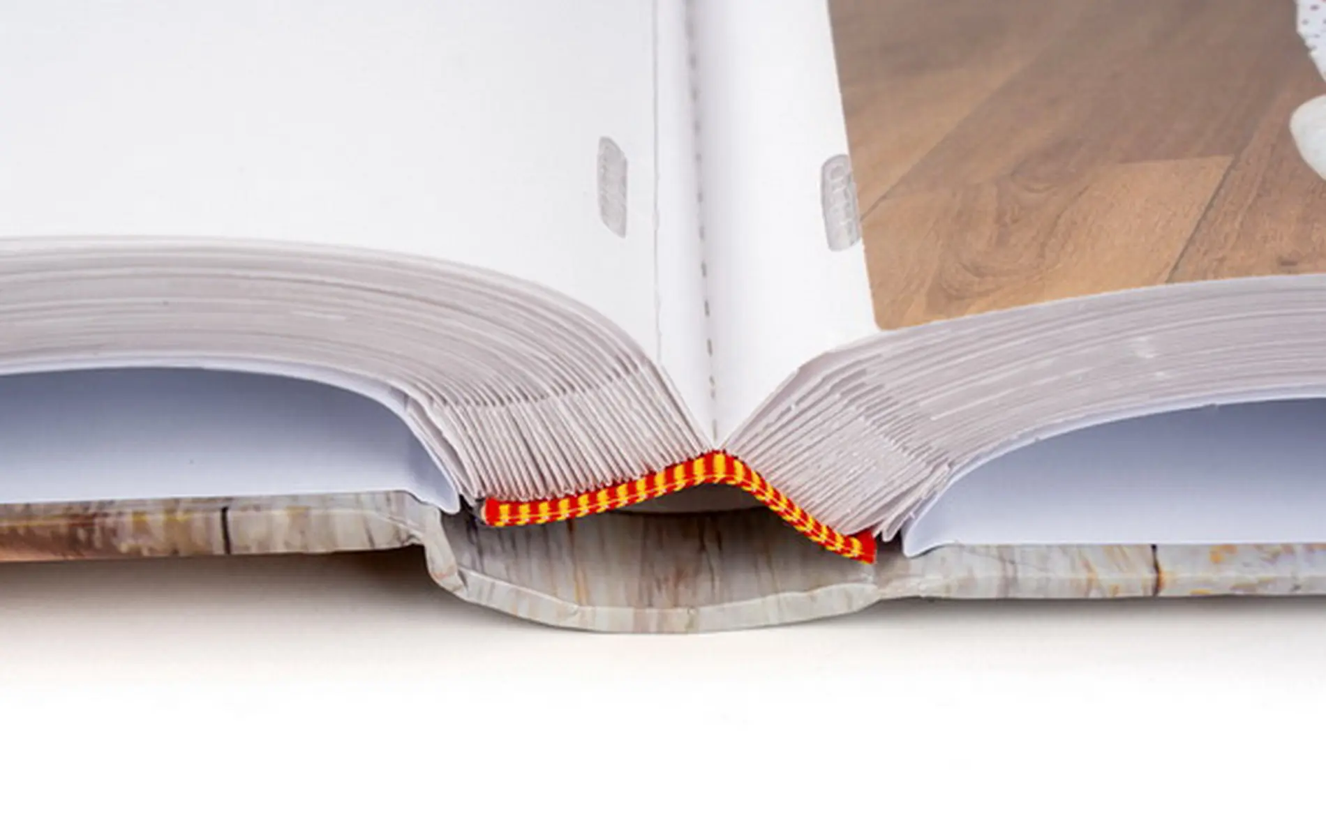 Na obálce je vyobrazen veselý motiv s dětskou tematikou, který zahrnuje pleteného králíčka, modré botičky a dřevěné hračky na pozadí motivu/dekoru dřeva. V horní části obálky je okénko pro vložení vlastní vyměnitelné fotografie (např. fotografie dítěte), což dodává albu osobní ráz. Je to skvělý dárek pro novopečené rodiče k uchování vzpomínek na první roky života dítěte.