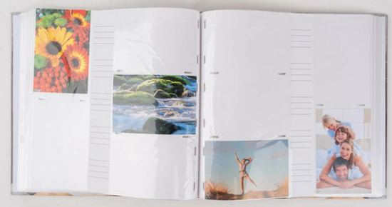 Jedná se o elegantní fotoalbum s laminovanou obálkou v tmavě šedé barvě s motivem. Album má šitou vazbu, která zaručuje jeho dlouhou životnost. Je ideální pro uchování až 500 fotografií formátu 10 x 15 cm, které se vkládají zasouváním. U každé fotografie je prostor pro popisky. Listy jsou vyrobeny