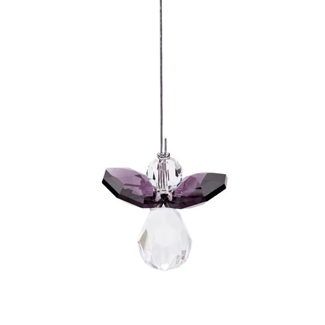 Elegantní anděl z broušeného skla s křídly v odstínu ametystu a čirým tělem i hlavou okouzlí svou jemnou fialovou barvou, která je odpradávna spojována s klidem, duchovní silou a ochranou. Díky preciznímu broušení skla nádherně zachytává světlo a rozehrává hru odlesků, které vyniknou při každém pohybu.