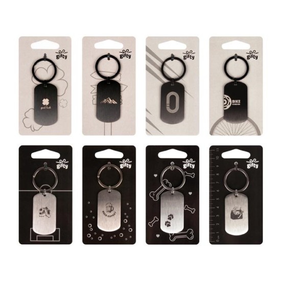 Kovové klíčenky Gifty nejsou jen kus kovu na kroužku – každý motiv má své téma, styl a nápad, který se hodí k osobnosti svého majitele. Gravírování dodává vzorům jemný výraz, který vyniká na kovovém povrchu.Nabídka motivů je rozmanitá: některé pobaví, jiné potěší nebo připomenou něco osobního. Display obsahuje 24 klíčenek s motivy pro různé typy lidí – pro kutily, pejskaře, milovníky piva, fotbalové fanoušky, turisty, běžce, cyklisty i ty, kteří ocení symbol čtyřlístku pro štěstí. Díky této skladbě je snadné najít klíčenku, která poslouží jako dárek, malá pozornost — nebo radost jen tak pro sebe.