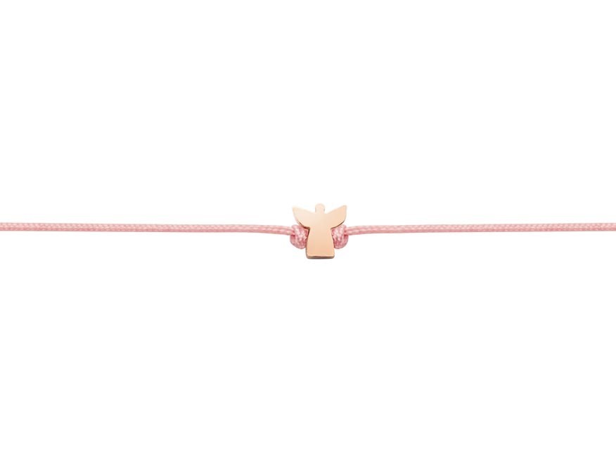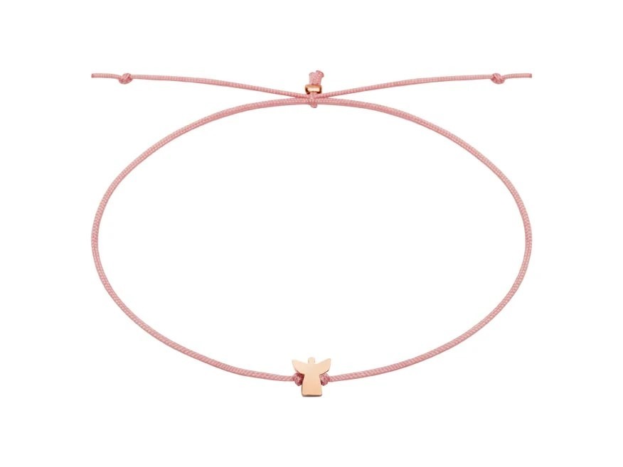 Na jemné textilní šňůrce je zavěšen drobný přívěsek v podobě anděla, laděný do romantického odstínu růžového zlata. Díky své jednoduchosti se hodí pro každodenní nošení – jako decentní doplněk, který v sobě ukrývá hlubší význam.