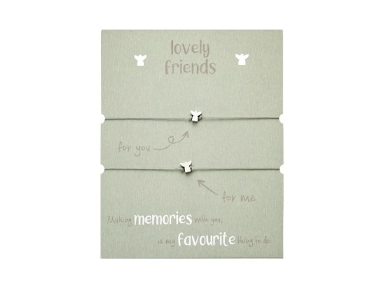 Náramky jsou připevněny na elegantní kartičce s anglickým textem for you a for me. Jeden náramek si ponecháte pro sebe a druhý darujete někomu blízkému – jako talisman přátelství, lásky nebo vzájemné podpory.
