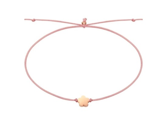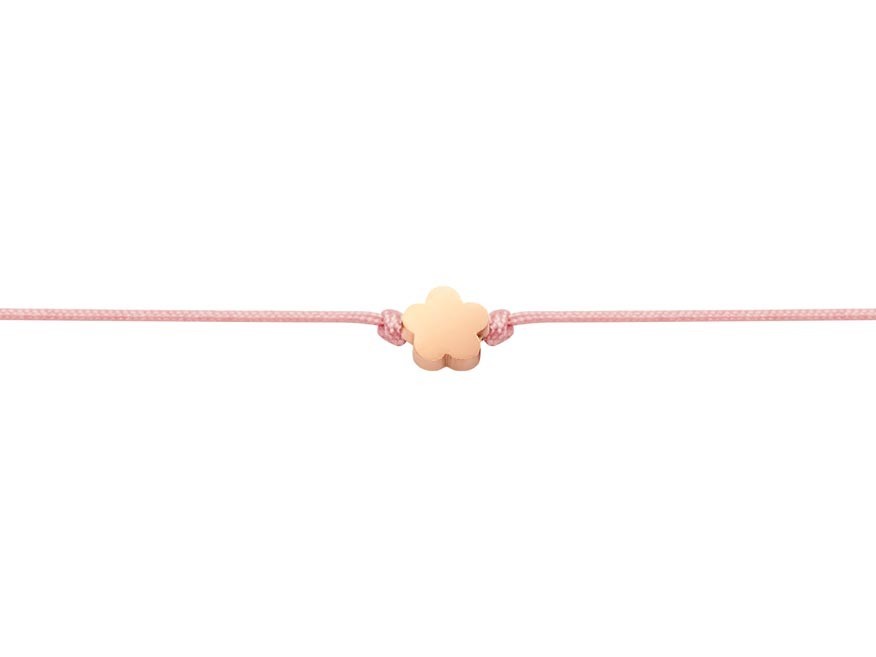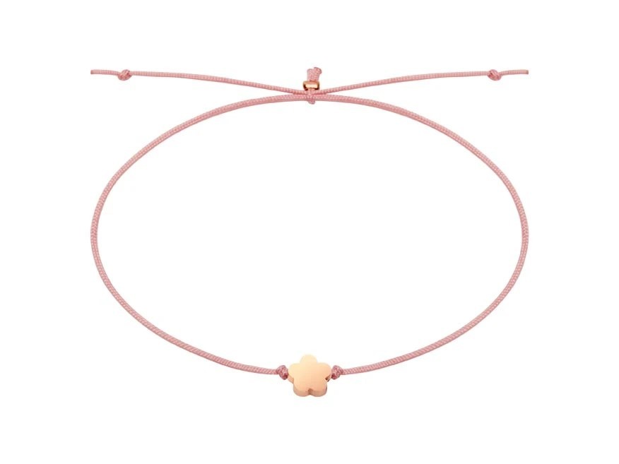 Na tenké textilní šňůrce je zavěšen drobný přívěsek ve tvaru květiny v růžově zbarveném provedení. Decentní design působí moderně a romanticky zároveň, takže náramky snadno doplní každodenní outfit a hodí se pro všechny věkové kategorie.