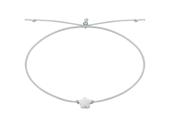 Na jemné textilní šňůrce je zavěšen drobný kovový přívěsek ve tvaru květiny ve stříbrném provedení. Díky minimalistickému designu se náramky hodí pro každodenní nošení, snadno se kombinují a sluší všem věkovým kategoriím.