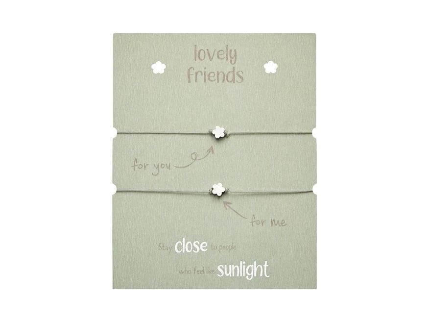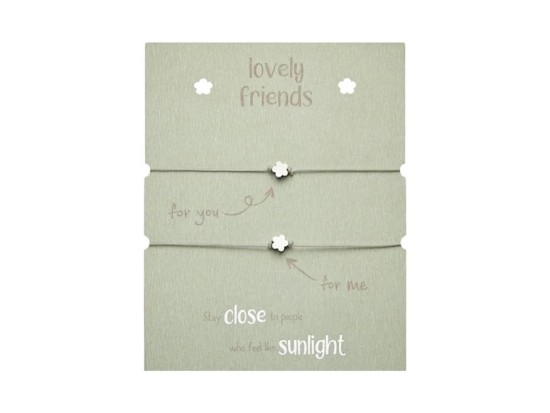 Náramky jsou upevněny na dárkové kartičce s nápisem for you a for me. Tento detail symbolicky vyjadřuje propojení dvou lidí – jeden náramek si necháte pro sebe a druhý věnujete někomu blízkému. Lovely Friends tak nejsou jen ozdobou, ale i krásným symbolem přátelství, lásky nebo vzájemné podpory.