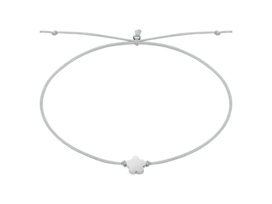Na jemné textilní šňůrce je zavěšen drobný kovový přívěsek ve tvaru květiny ve stříbrném provedení. Díky minimalistickému designu se náramky hodí pro každodenní nošení, snadno se kombinují a sluší všem věkovým kategoriím.