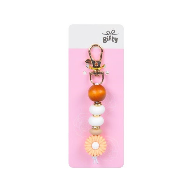 Silikonový přívěsek KVĚTINA od Gifty je jemný a originální detail, který vašim klíčům, batohu nebo kabelce propůjčí osobitý styl.Design kombinuje silikonové a dřevěné korálky s květinovým motivem, díky čemuž působí moderně a hravě zároveň. Kovová karabinka umožní snadné připevnění, takže jej můžete mít vždy po ruce.