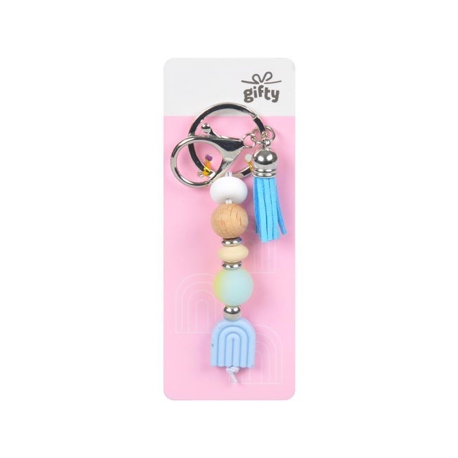 Silikonový přívěsek s motivem duhy od Gifty spojuje hravý design a praktické využití v jednom. Barevná kombinace silikonových a dřevěných korálků doplněná o ozdobný střapec působí moderně, lehce a stylově.Přívěsek je lehký, odolný a příjemný na dotek. Díky kovovému kroužku a karabince jej snadno připevníte ke klíčům, tašce či batohu. Skvěle poslouží i jako drobný dárek, který potěší svou originalitou.