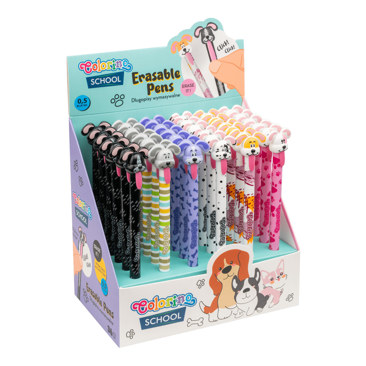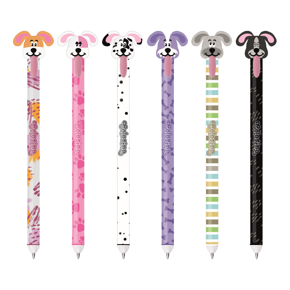 Prostě je vymaž a přepiš. Pevná pryž na konci pera a jedinečné složení inkoustu zaručuje jednoduché a opakované gumování.Gumovatelná pera s veselou koncovkou ve tvaru pejsčí hlavy. Pro zapnutí pera jednoduše zatáhni za vyplazený jazyk a můžeš se pustit do psaní.