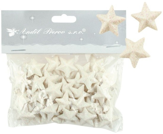 Hvězdičky s glitry 50 ks bílé, 2 cm