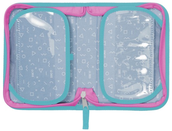 Chlopně mají na vnější straně průhlednou kapsičku na rozvrh či jiné malé dokumenty, na vnitřní straně je pak nová síťovaná kapsička pro uložení drobností.