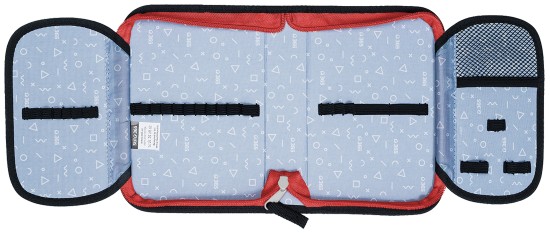 Chlopně mají na vnější straně průhlednou kapsičku na rozvrh či jiné malé dokumenty, na vnitřní straně je pak nová síťovaná kapsička pro uložení drobností.