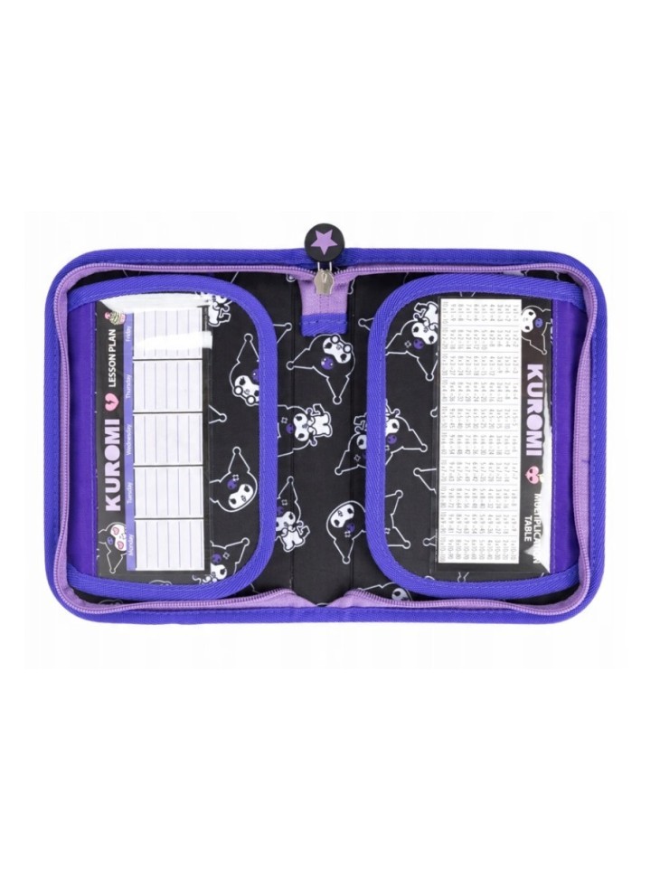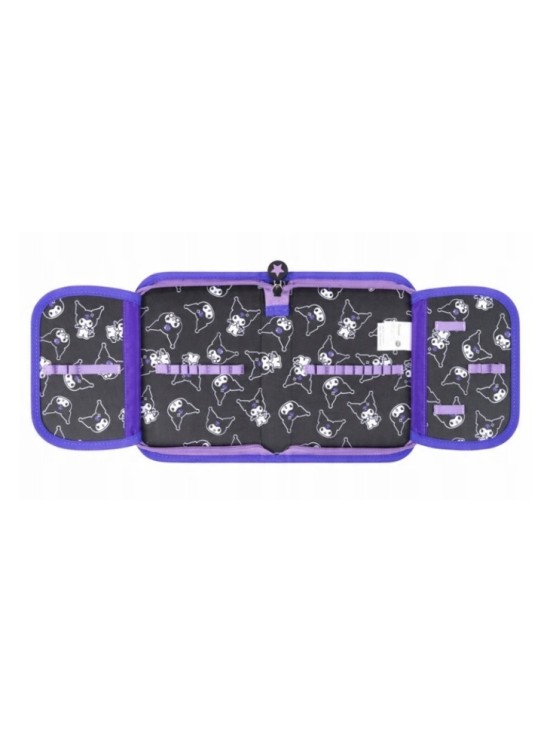 Penál Kuromi Black Double Flap je jednopatrový penál se dvěma klopami a jednou přihrádkou na zip.