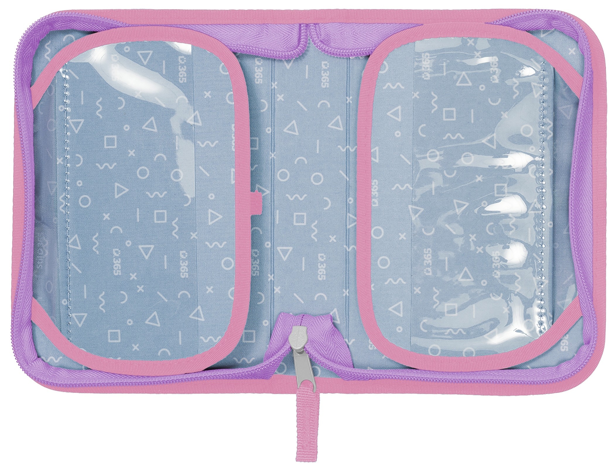 Chlopně mají na vnější straně průhlednou kapsičku na rozvrh či jiné malé dokumenty, na vnitřní straně je pak nová síťovaná kapsička pro uložení drobností.