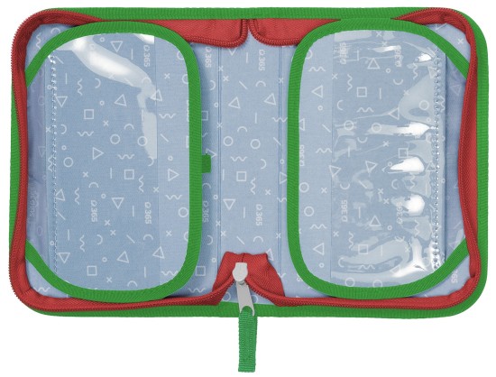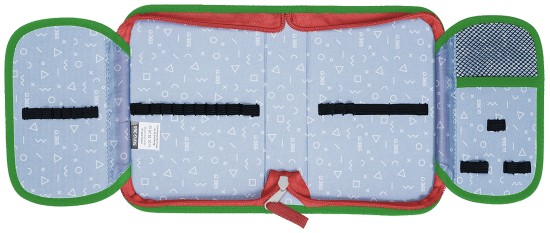 Chlopně mají na vnější straně průhlednou kapsičku na rozvrh či jiné malé dokumenty, na vnitřní straně je pak nová síťovaná kapsička pro uložení drobností.