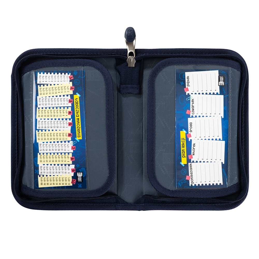• Prostor pro rozvrh: Vnitřní průhledné kapsy na chlopních jsou ideální pro umístění rozvrhu hodin nebo malé násobilky.