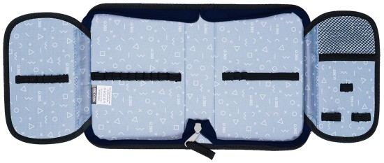 Chlopně mají na vnější straně průhlednou kapsičku na rozvrh či jiné malé dokumenty, na vnitřní straně je pak nová síťovaná kapsička pro uložení drobností.