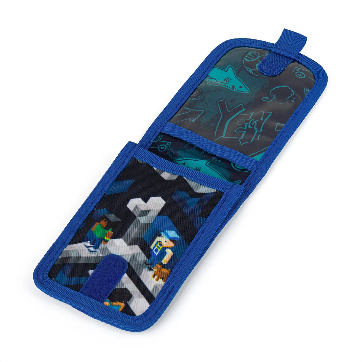 Praktická, lehká a stylová. Tato víceúčelová kapsička na krk s moderním pixelovým designem je nepostradatelným doplňkem pro každého školáka, který chce mít své cennosti v bezpečí a stále po ruce.