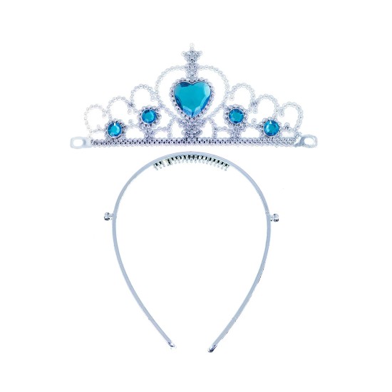 Korunka je vyrobena z PVC a dekorována ozdobnými kamínky v modré barvě.