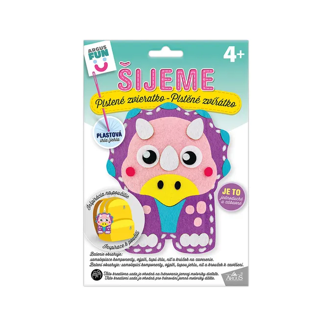 • Bezpečné šití: Díky tupé plastové jehle a předděrovaným dílům je sada naprosto bezpečná i pro menší děti (doporučený věk 4+).• Vše v jednom balení: Nemusíte nic dokupovat. Sada obsahuje veškerý materiál: barevné plsti, nit, jehlu, kroužek a návod.