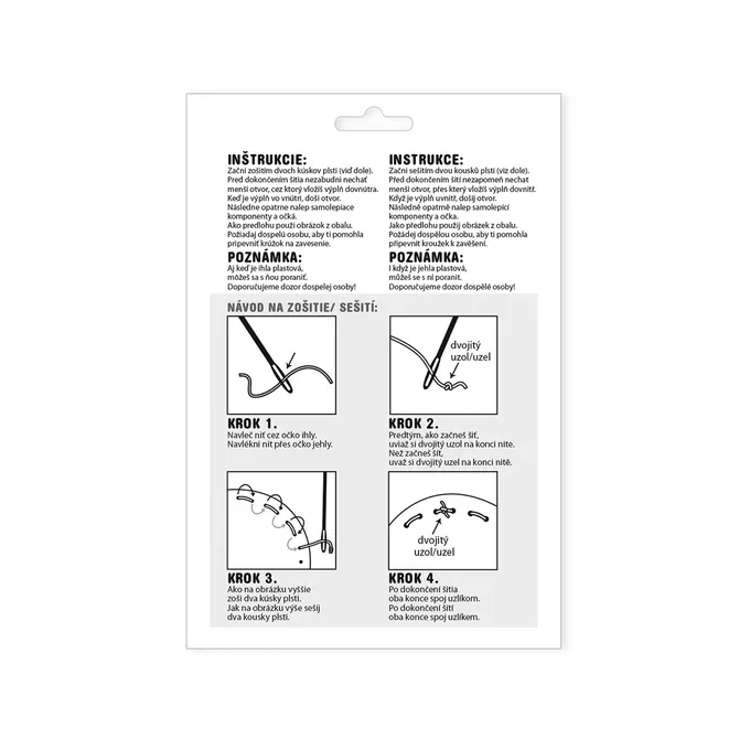 • Bezpečné šití: Díky tupé plastové jehle a předděrovaným dílům je sada naprosto bezpečná i pro menší děti (doporučený věk 4+).• Vše v jednom balení: Nemusíte nic dokupovat. Sada obsahuje veškerý materiál: barevné plsti, nit, jehlu, kroužek a návod.